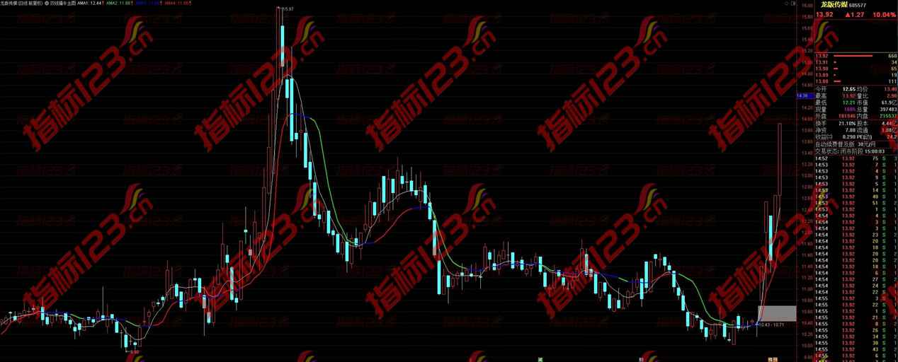 “双线擒牛”主图指标主要是根据两条线的相对位置以及价格走势来判断牛市的启动和结束。该指标的独特之处在于,它不仅考虑了股票的基本面,还充分考虑了市场情绪和动量。