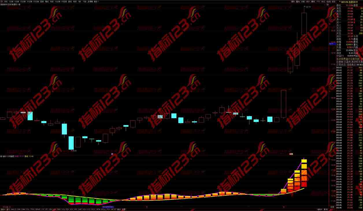 紫云线谱副图指标由买线和卖线构成,通过特定的算法,对市场趋势进行精准刻画。买线以EMA(C,3)为基础,通过调整颜色和线条粗细,使投资者能够清晰地看到市场的买入信号。而卖线则利用SLOPE函数结合EMA算法,对市场的卖出信号进行精准捕捉。这样的设计使得紫云线谱能够在复杂多变的股市行情中,为投资者提供稳定且有效的交易信号。