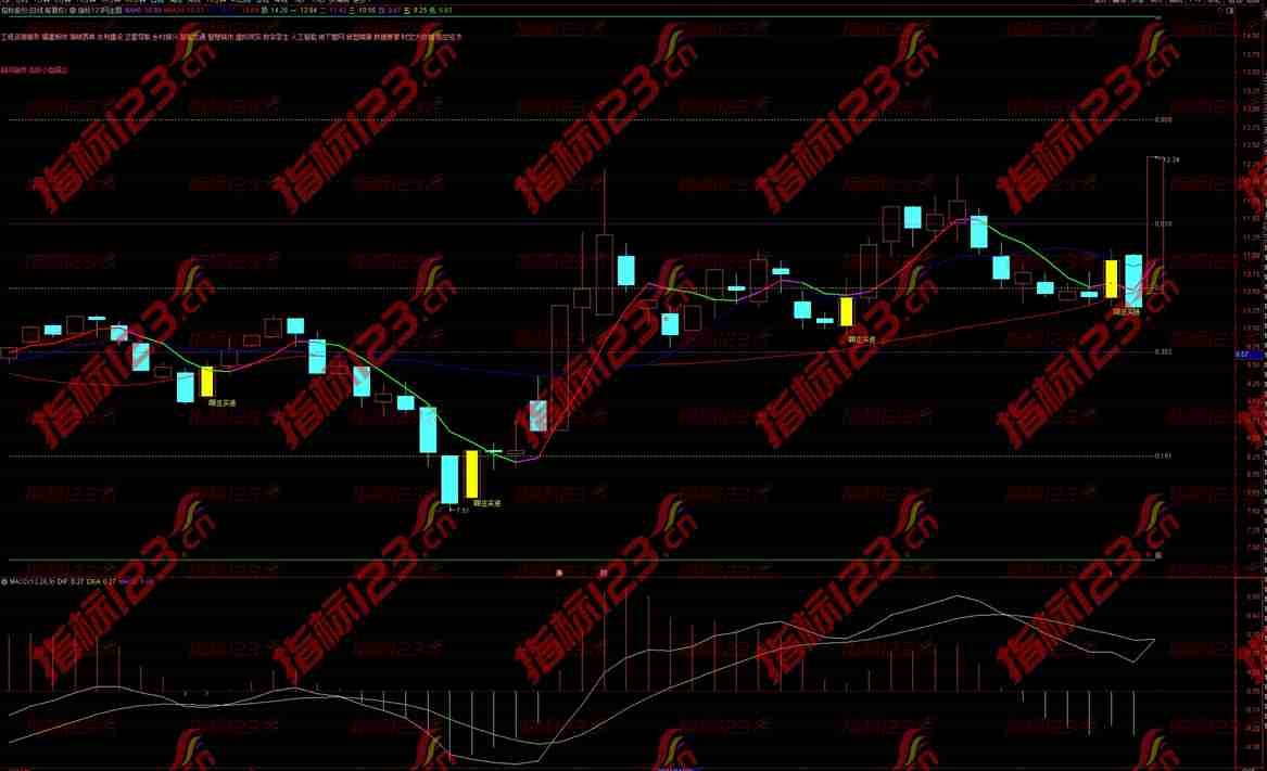 此外,《黄金狙击》主图指标还配备了副图指标——逢高减仓,它如同一个贴心的助手,时刻提醒投资者注意风险,逢高减仓,避免被套牢。副图指标由四种颜色的线组成,分别代表警戒线、减仓线、卖出线和趋势线,为投资者提供了全面的建仓、警示、减仓和逃顶信号。