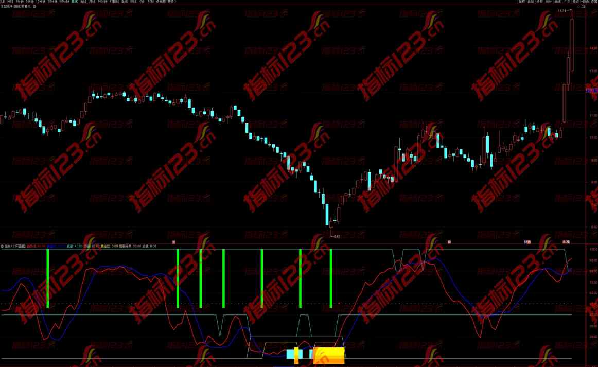 底部:IF((趋势线-VAR6<(-65)),20,40),COLORF0F000;