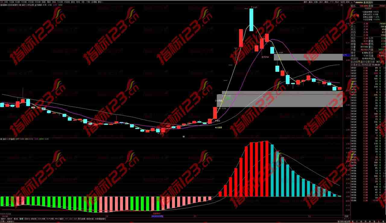 STICKLINE(MACD>0 AND MACD< REF(MACD,1),0,MACD,2,0),COLORLIBLUE;