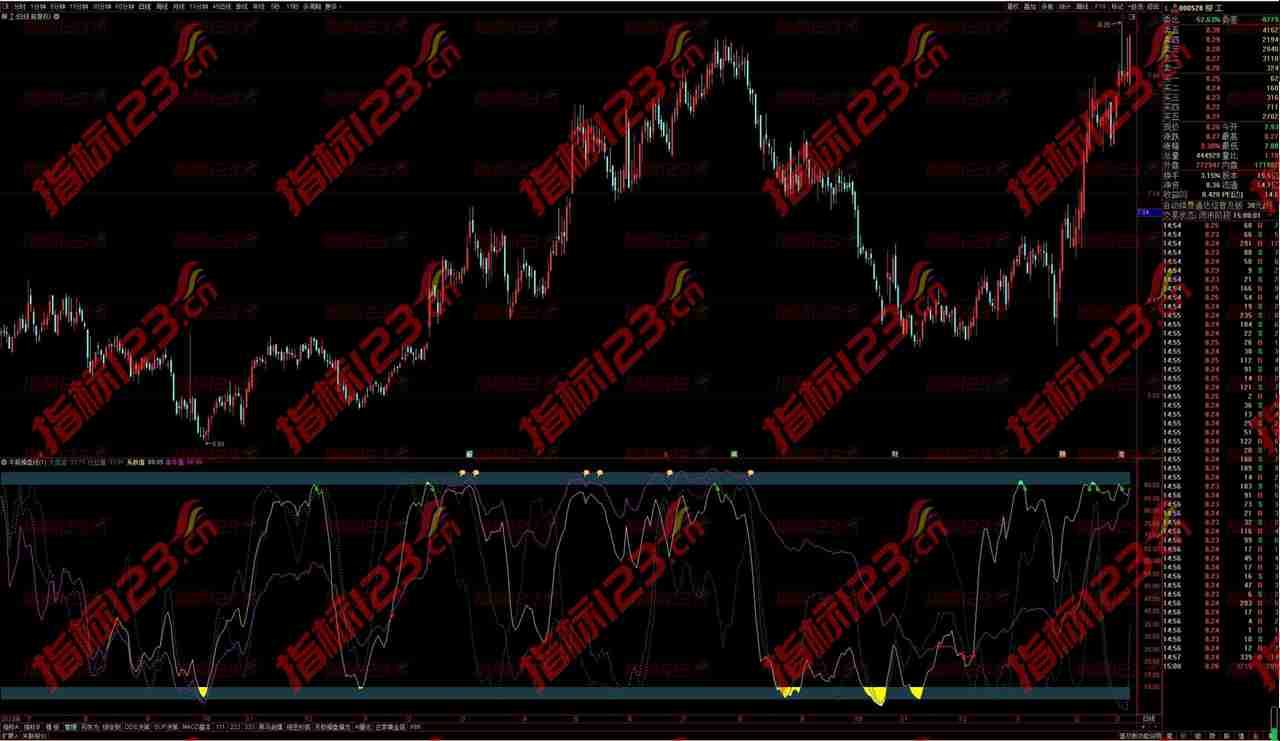 在副图指标中,《牛熊操盘线》以其鲜明的色彩和直观的线条,清晰地标注出市场的牛熊转换点。当线条由蓝转红,意味着市场正由熊市转向牛市,是买入的好时机;而当线条由红转蓝,则警示着市场可能正步入熊市,投资者应做好风险控制,适时减仓或离场。