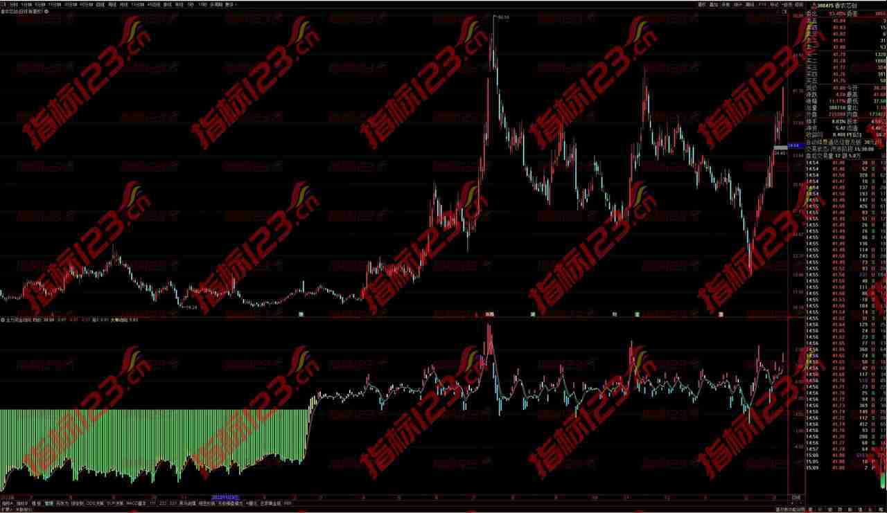 使用该指标时,我们首先要关注其显示的资金流向。当红色柱状图出现时,表示主力资金正在流入,这可能意味着该股票或期货品种正在受到主力的青睐,未来有可能出现上涨行情。相反,当绿色柱状图出现时,则意味着主力资金正在流出,这可能预示着市场即将面临调整或下跌。