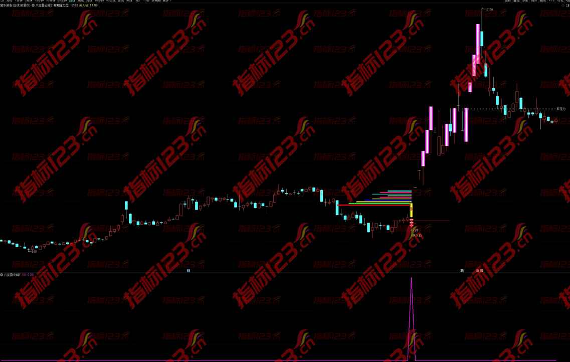 通达信《八宝叠云峰》指标是一套结合筹码结构形态而设计的短线类型的指标,通达信《八宝叠云峰》全套指标包括一个主图、一个副图和一个选股预警公式,全套指标没有未来函数,信号稳定不漂移,可导入手机使用。