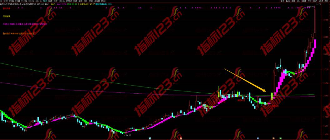 卖点:当神奇中线由向上发散转变为向下收拢并即将或已经开始向下发散时为最后的卖点。当神奇短线A9与A8发生“死叉”时为短线“卖点”。