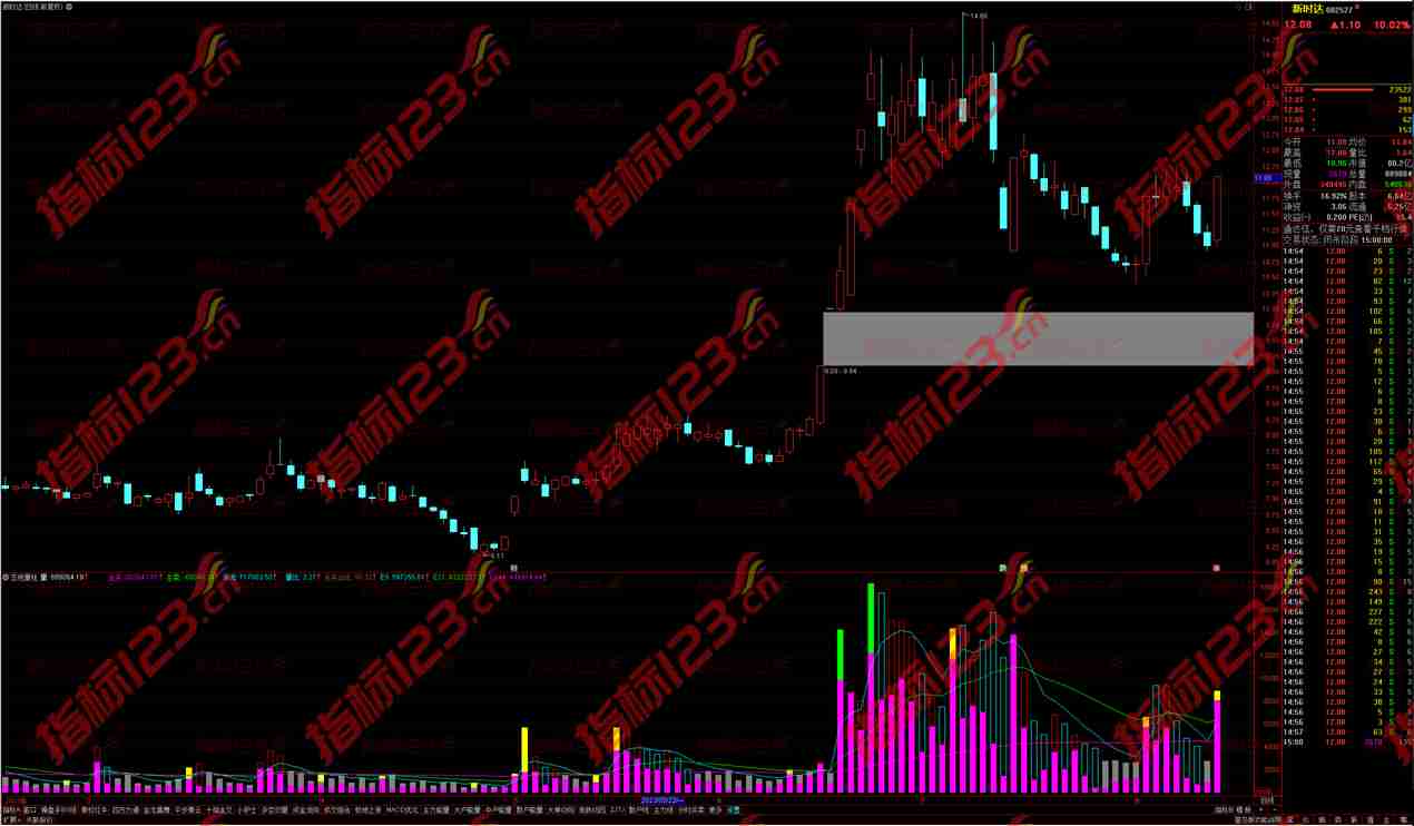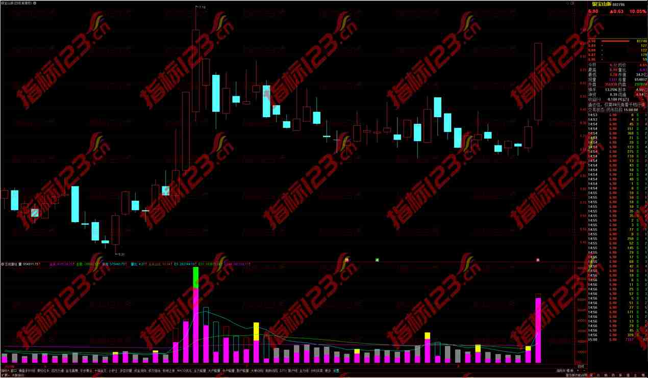 通达信五色量柱副图,是一种基于成交量变化的视觉表达。它以五种不同的颜色区分不同规模的成交量,并通过颜色的变化反映成交量的动态。红色代表近期成交量较大的区域,黄色代表成交量适中的区域,绿色代表成交量较小的区域,白色代表成交量出现突变的区域,而蓝色则代表地量区域。